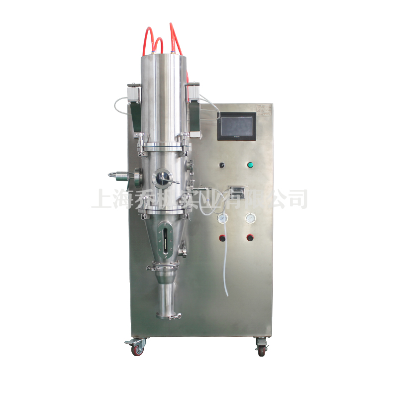 1)多功能噴霧造粒機(jī)操作方便:控制系統(tǒng)采用PLC自動(dòng)控制,彩*觸摸屏操作,實(shí)驗(yàn)過程中實(shí)驗(yàn)參數(shù)如進(jìn)風(fēng)溫度,出風(fēng)溫度,物料溫度,風(fēng)機(jī)轉(zhuǎn)速,噴霧壓力等可以根據(jù)實(shí)驗(yàn)需要即時(shí)更改,方便用戶使用;觸摸屏帶USB接口,數(shù)據(jù)可導(dǎo)出至U盤或在線打印;