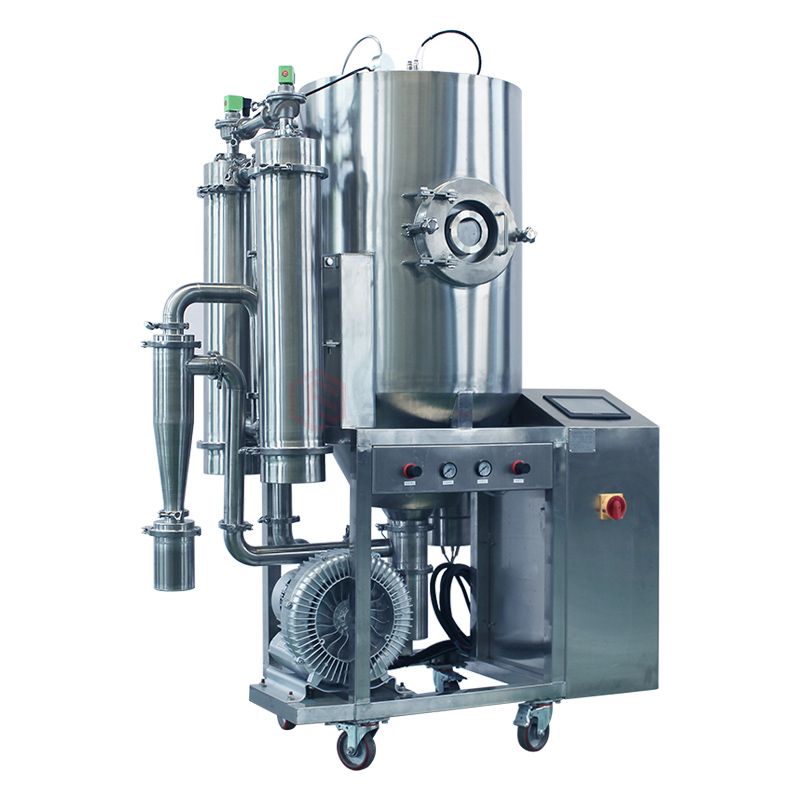 可升級為低溫噴霧干燥機(配喬楓的低溫干燥系統QFN-CX-5-MD10),在實現*低35攝氏度對物料噴霧干燥。對于新材料的研發具有重要意義。即可實現35-280攝氏度大區間范圍對物料進行噴霧干燥??蓪崿F高低溫一體噴霧干燥機。區別于一般180-280攝氏度的高溫噴霧干燥機。
